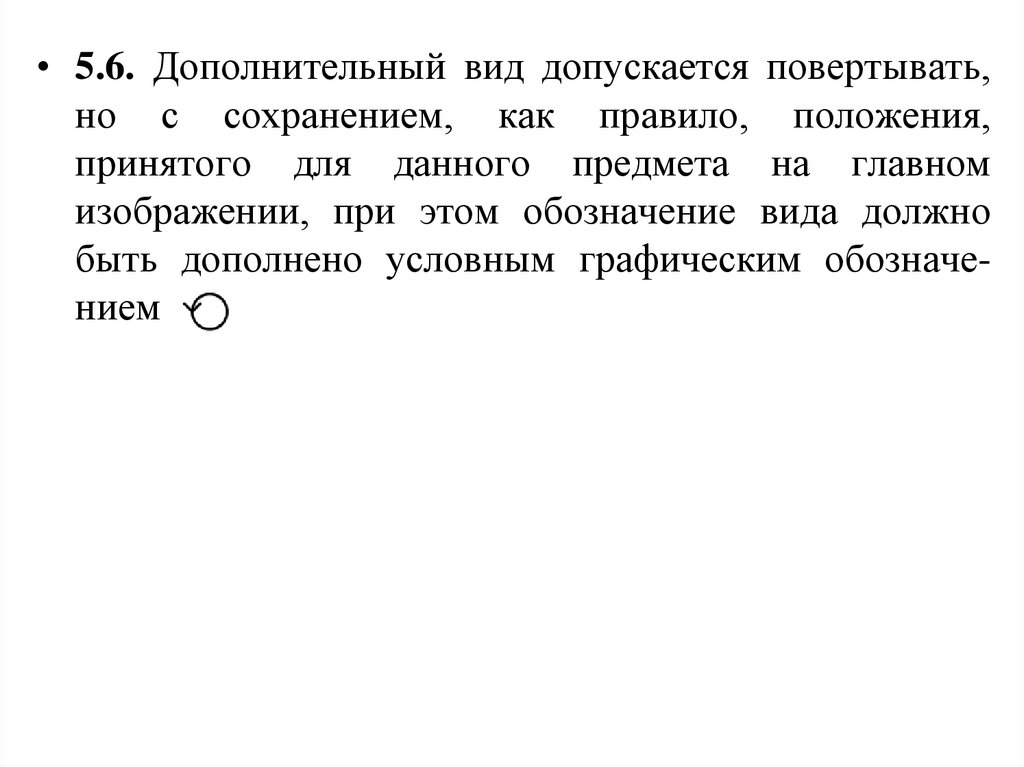 • 5.6. Дополнительный вид допускается повертывать,но с сохранением, как правило, положения,