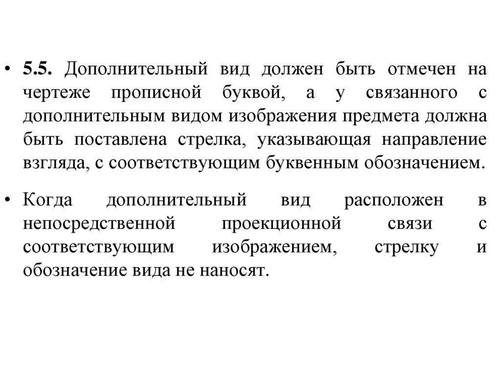 • 5.5. Дополнительный вид должен быть отмечен начертеже прописной буквой, а у связанного с