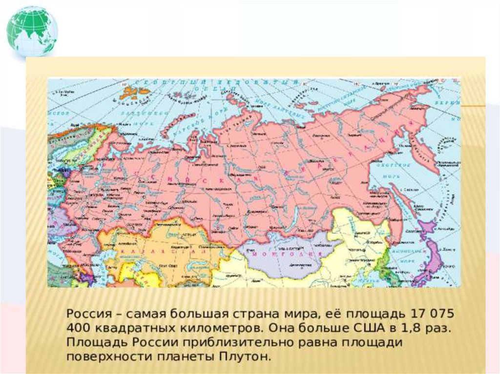 Крупнейшее государство мира ( 1/9 площади всей суши Земли,