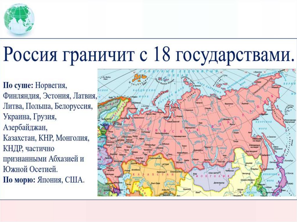 Граничит с 18 странами (самый большой показатель в мире).