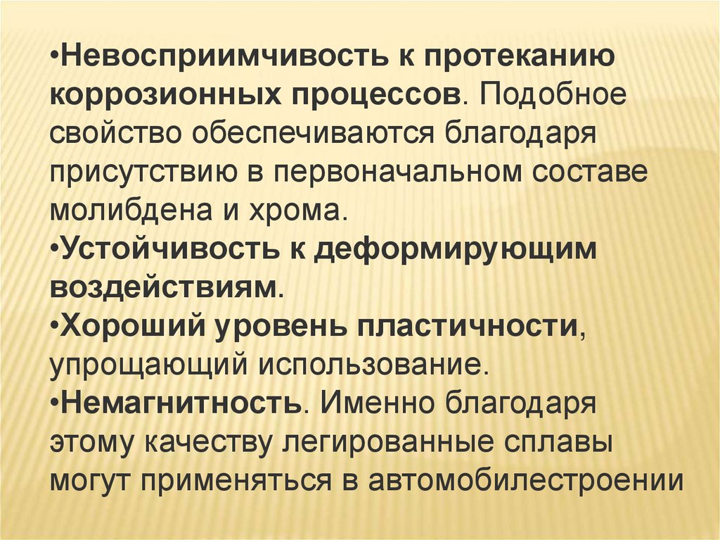 •Невосприимчивость к протеканиюкоррозионных процессов. Подобное