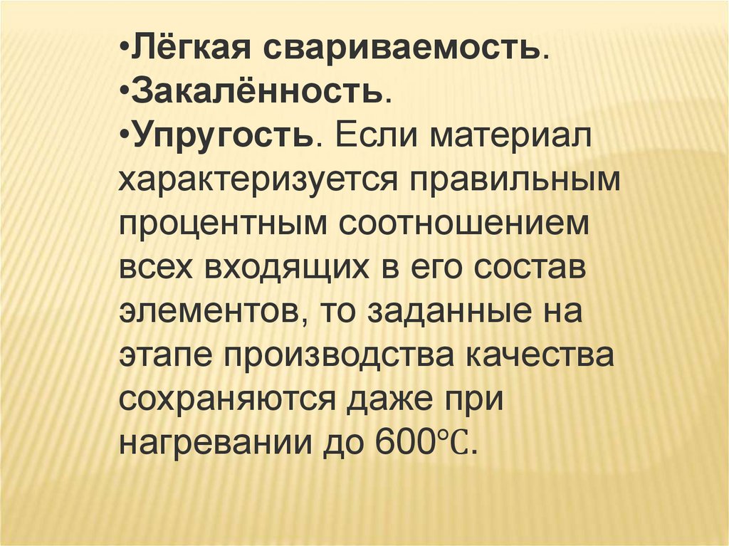 •Лёгкая свариваемость.•Закалённость.