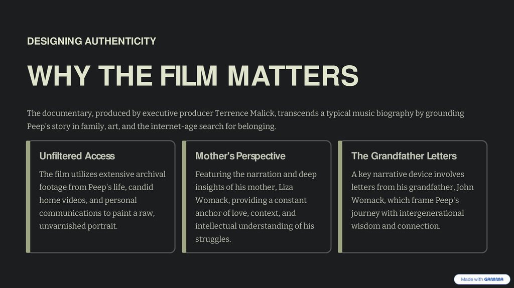 DESIGNING AUTHENTICITYWHY THE FILM MATTERS