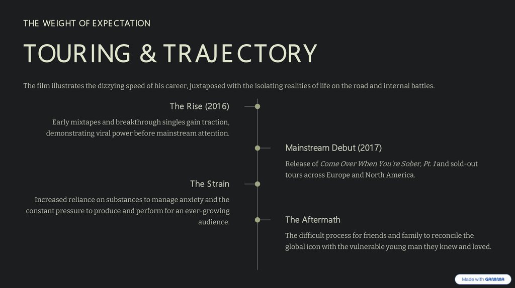 The film illustrates the dizzying speed of his career, juxtaposed with the isolating realities of life on the road and internal battles.