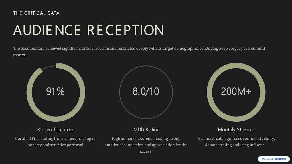 The documentary achieved significant critical acclaim and resonated deeply with its target demographic, solidifying Peep’s legacy as a cultural