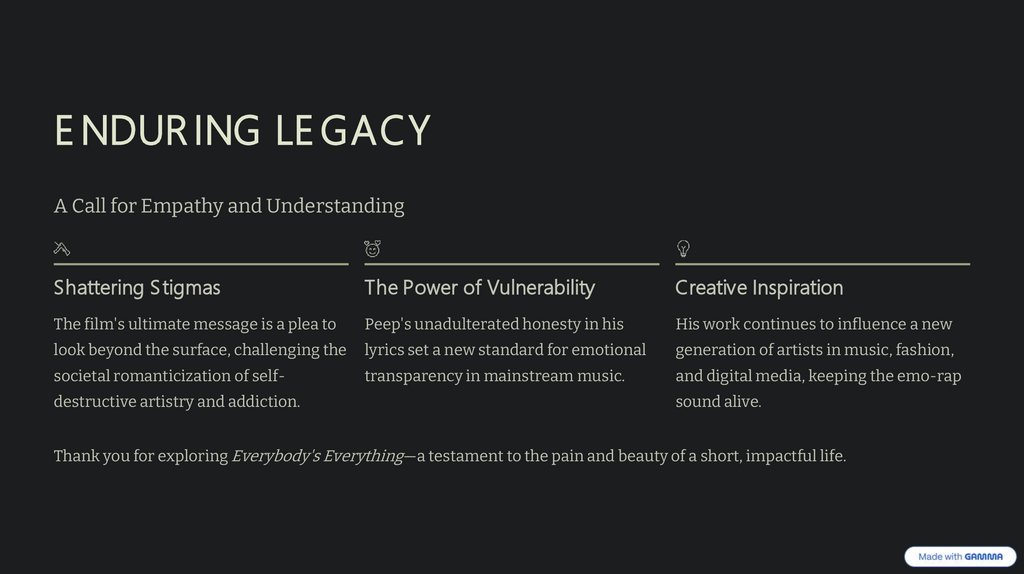 Thank you for exploring Everybody's Everything—a testament to the pain and beauty of a short, impactful life.