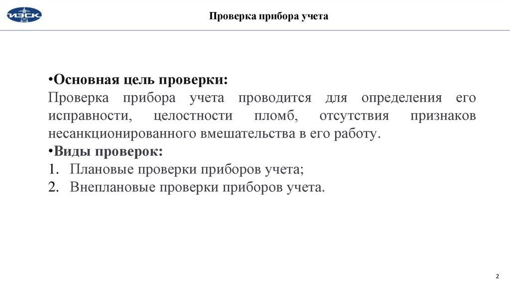 Проверка прибора учета•Основная цель проверки: