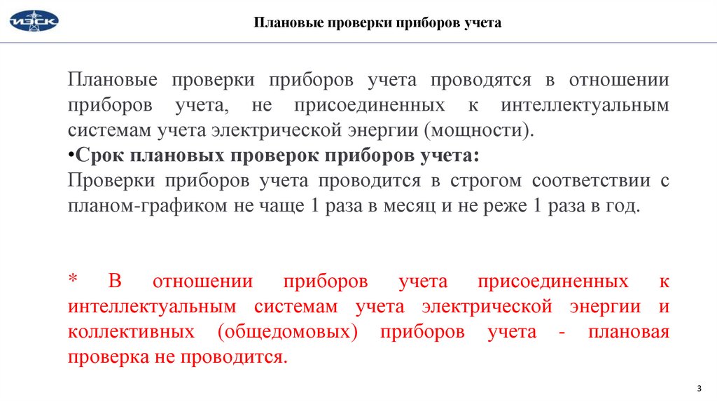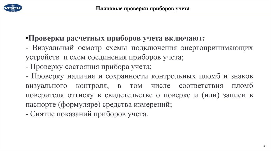 Плановые проверки приборов учета•Проверки расчетных приборов учета включают: