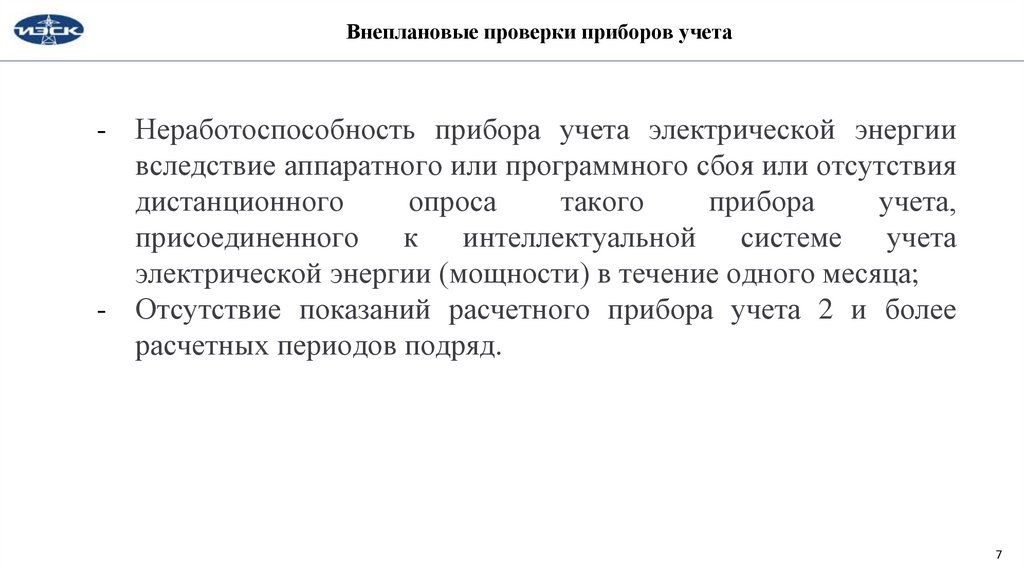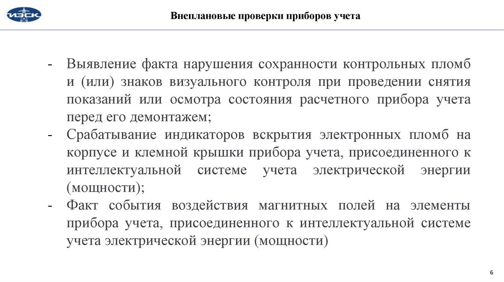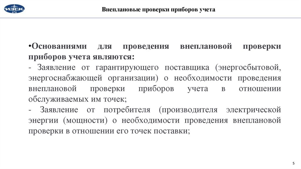 Внеплановые проверки приборов учета•Основаниями для проведения внеплановой проверки