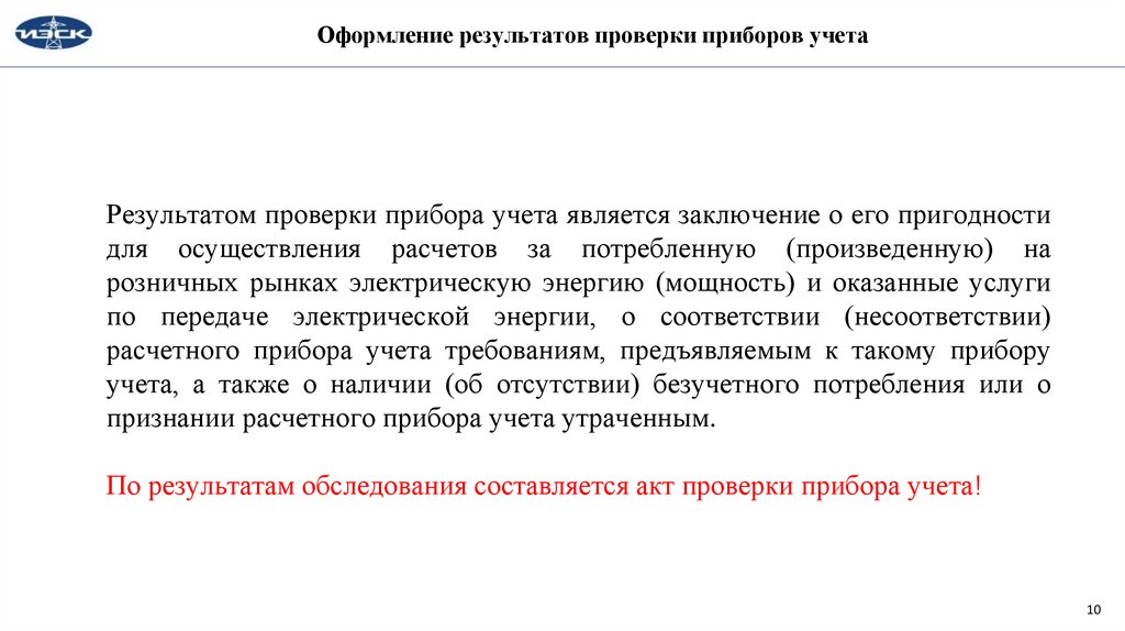 Оформление результатов проверки приборов учетаРезультатом проверки прибора учета является заключение о его пригодности