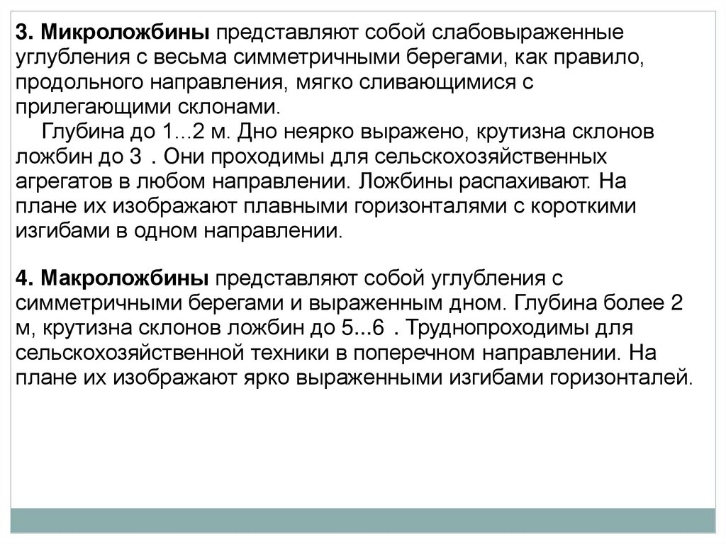 3. Микроложбины представляют собой слабовыраженныеуглубления с весьма симметричными берегами, как правило,