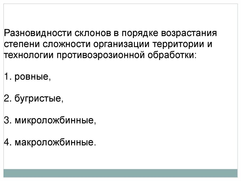 Разновидности склонов в порядке возрастаниястепени сложности организации территории и