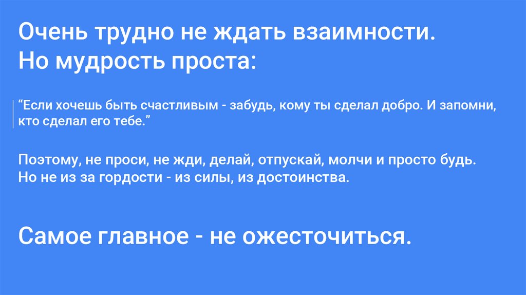 Очень трудно не ждать взаимности.Но мудрость проста: