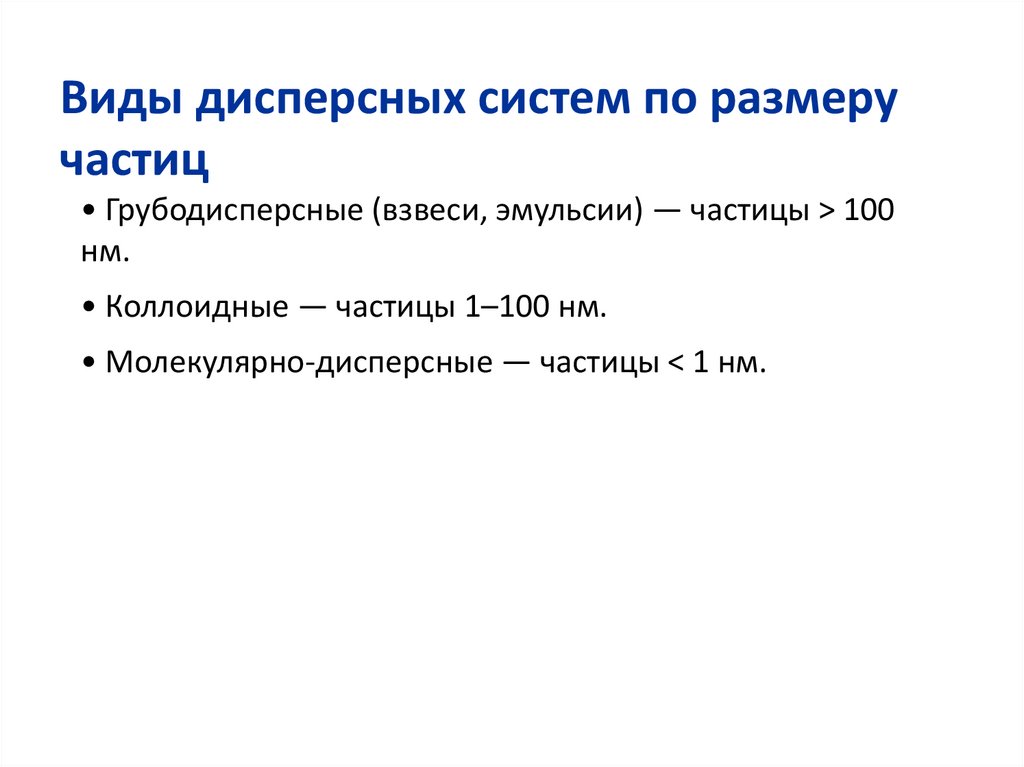 • Грубодисперсные (взвеси, эмульсии) — частицы > 100