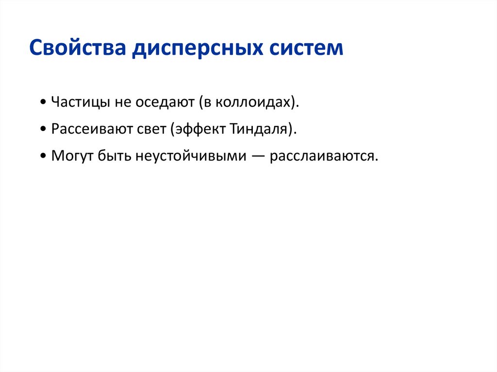 Свойства дисперсных систем• Частицы не оседают (в коллоидах).