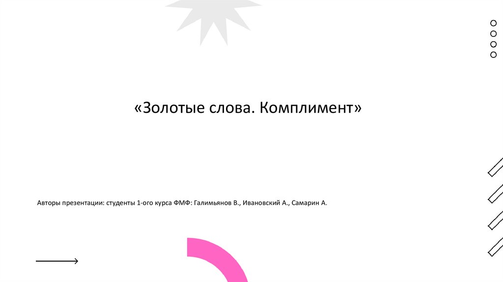 «Золотые слова. Комплимент»Авторы презентации: студенты 1-ого курса ФМФ: Галимьянов В., Ивановский А., Самарин А.