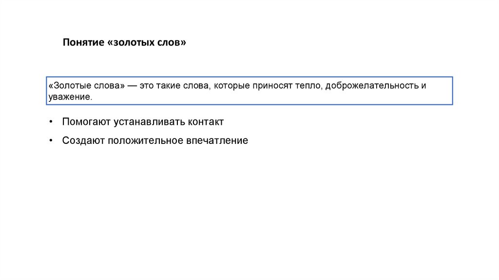 Понятие «золотых слов»«Золотые слова» — это такие слова, которые приносят тепло, доброжелательность и