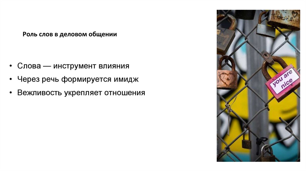 Роль слов в деловом общении• Слова — инструмент влияния