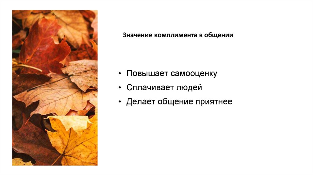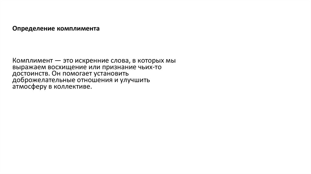 • Комплимент — проявление уважения