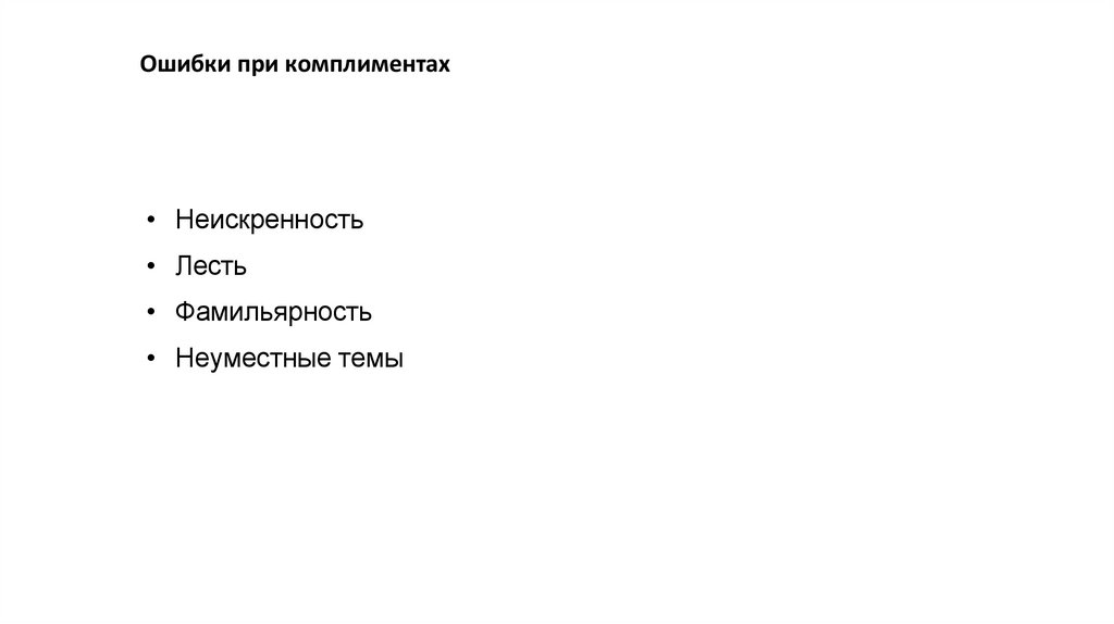 Ошибки при комплиментах• Неискренность