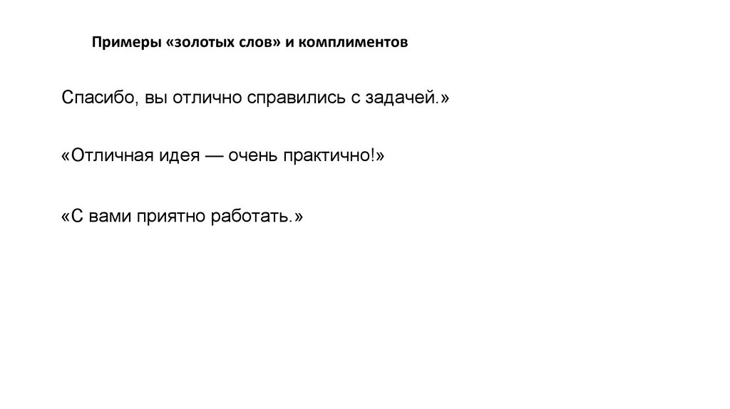 Примеры «золотых слов» и комплиментовСпасибо, вы отлично справились с задачей.»