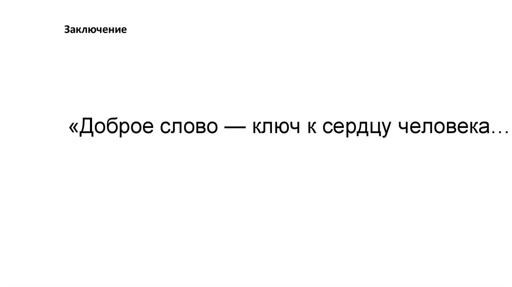 Заключение«Доброе слово — ключ к сердцу человека…»