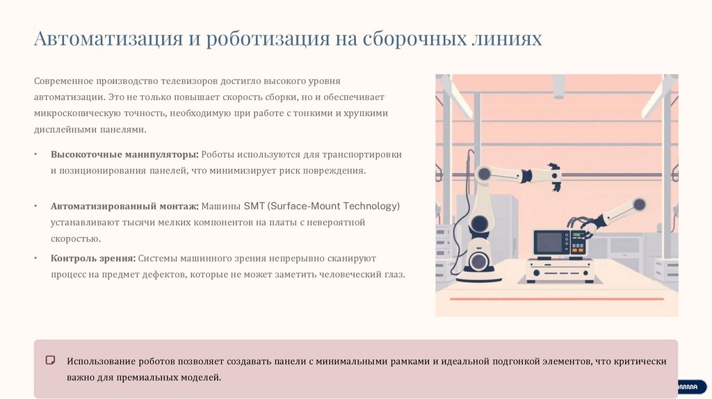 Автоматизация и роботизация на сборочных линияхСовременное производство телевизоров достигло высокого уровня