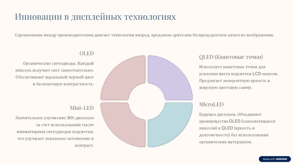 Инновации в дисплейных технологияхСоревнование между производителями двигает технологии вперед, предлагая зрителям беспрецедентное качество изображения.