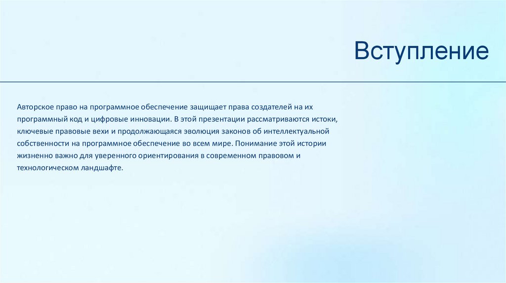 ВступлениеАвторское право на программное обеспечение защищает права создателей на их