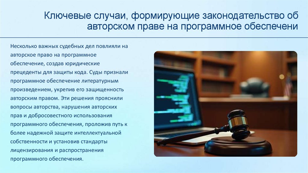 Ключевые случаи, формирующие законодательство обавторском праве на программное обеспечени