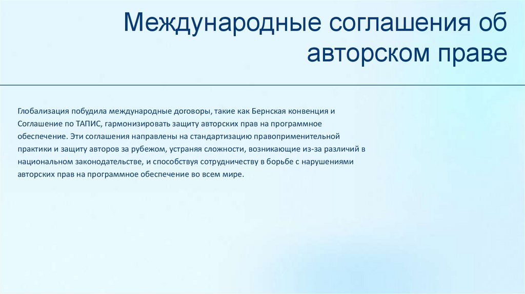 Соглашение по ТАПИС, гармонизировать защиту авторских прав на программное