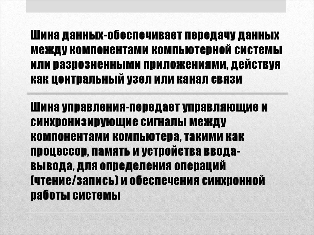 Шина данных-обеспечивает передачу данныхмежду компонентами компьютерной системы
