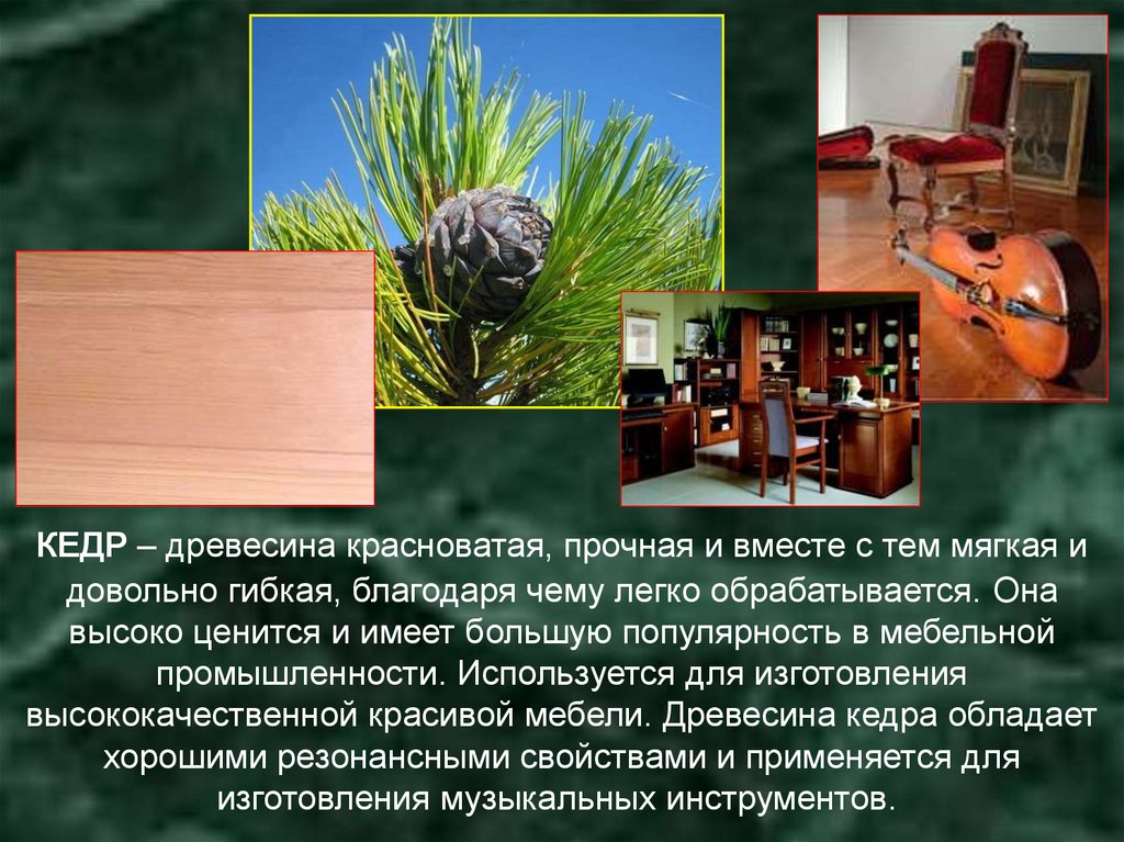 9. ДУБ – твердая лиственная порода; коричневато – серого цвета. Древесина дуба прочная, стойкая против гниения, хорошо гнется,