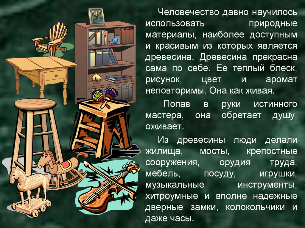 7. Разнообразие пород древесины позволили применять её для самых различных работ.