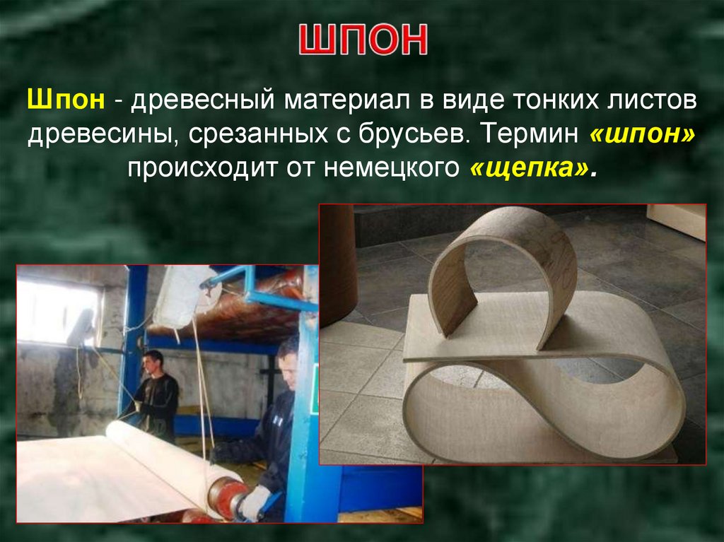 Шпон - древесный материал в виде тонких листовдревесины, срезанных с брусьев. Термин «шпон»
