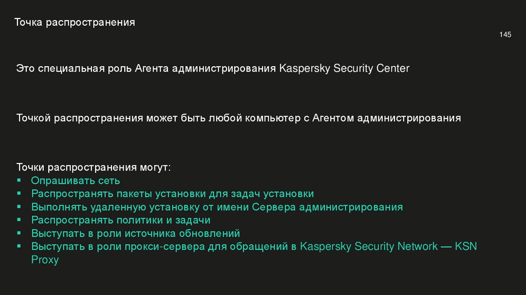 Точкой распространения может быть любой компьютер с Агентом администрирования