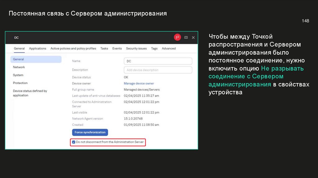 Постоянная связь с Сервером администрирования148