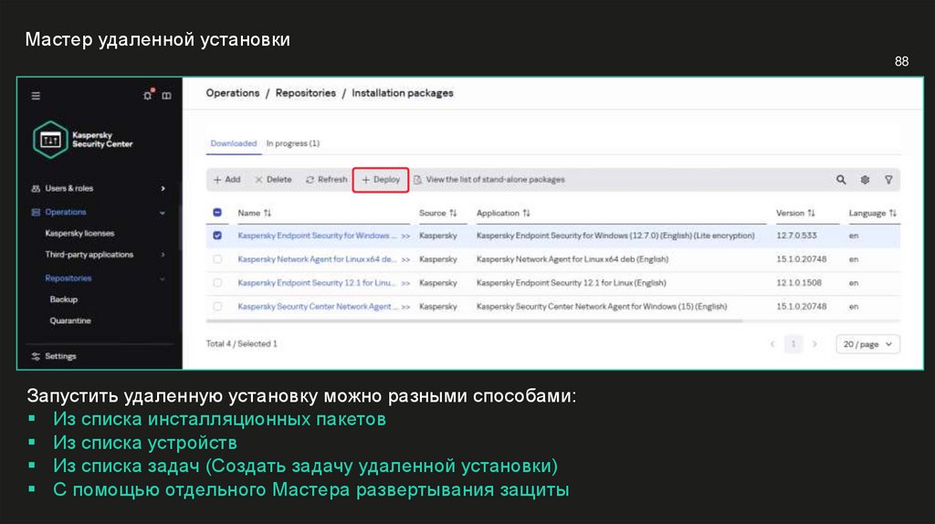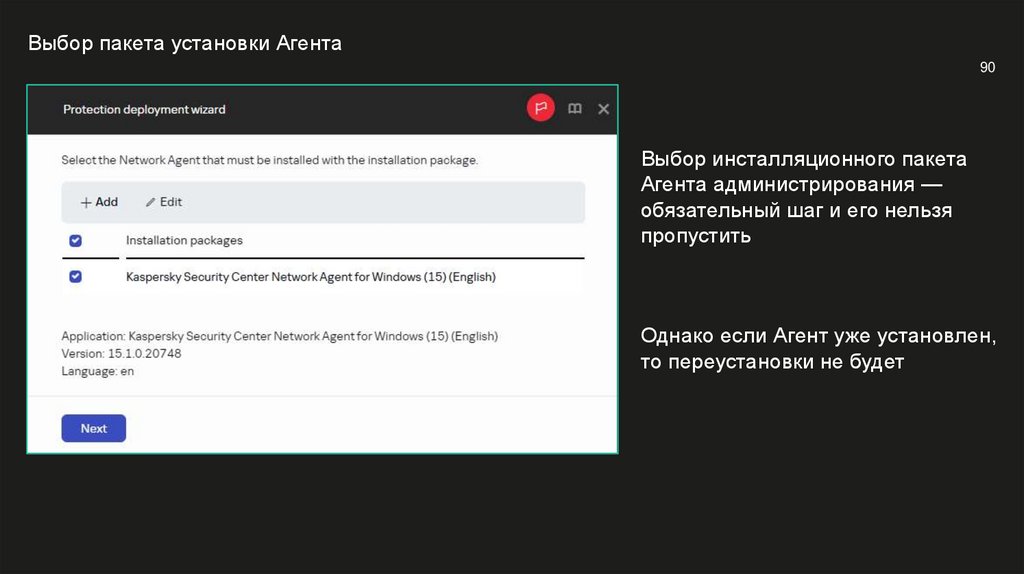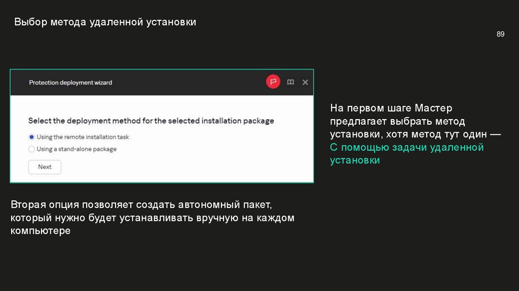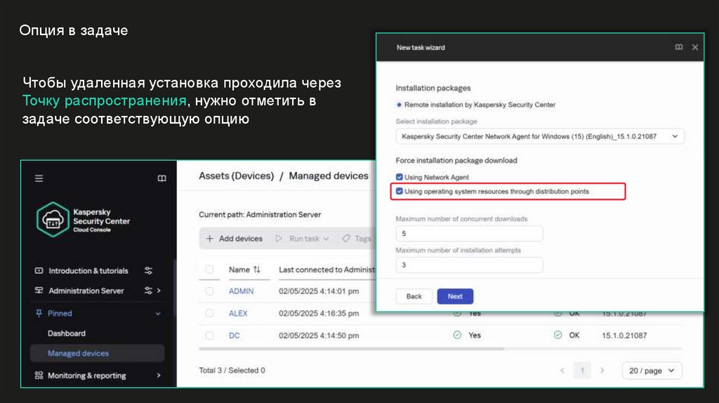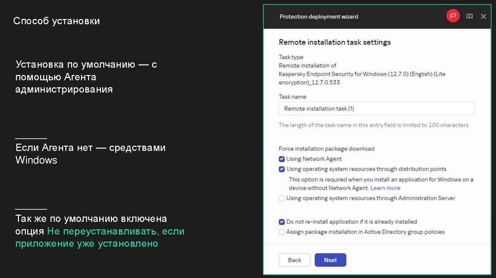 Выполнять удаленную установку от имени Сервера администрирования