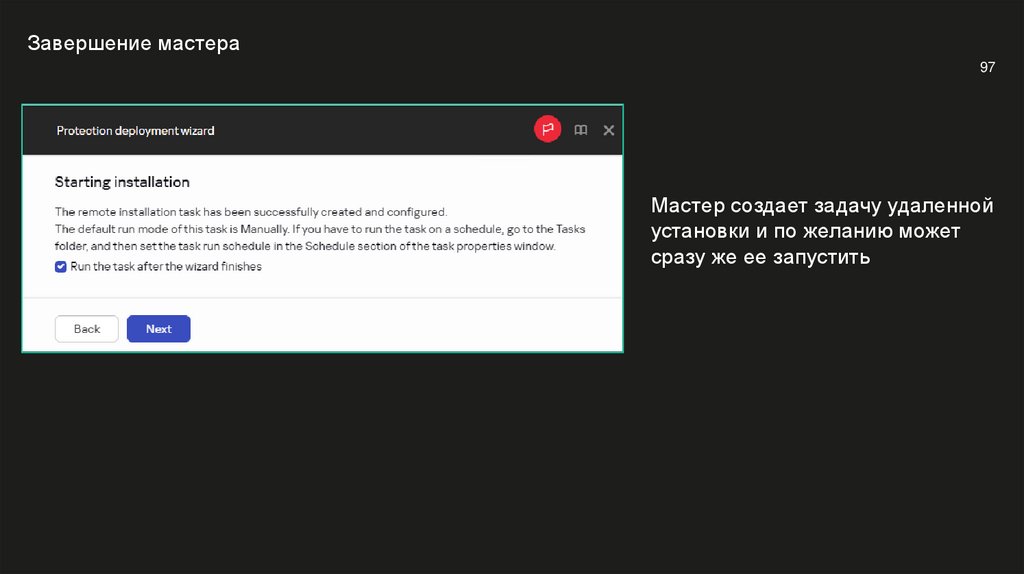 Теперь можно использовать обычную задачу удаленной установки Агента