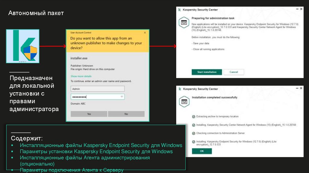 автономным пакетом Агента администрирования: