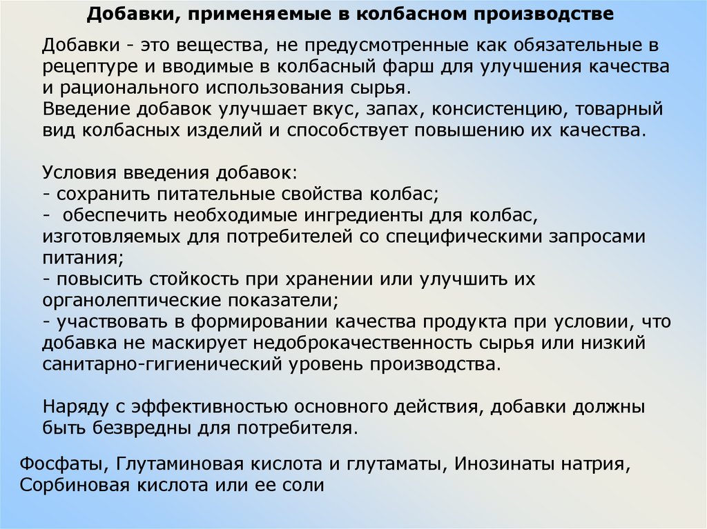 рецептуре и вводимые в колбасный фарш для улучшения качества