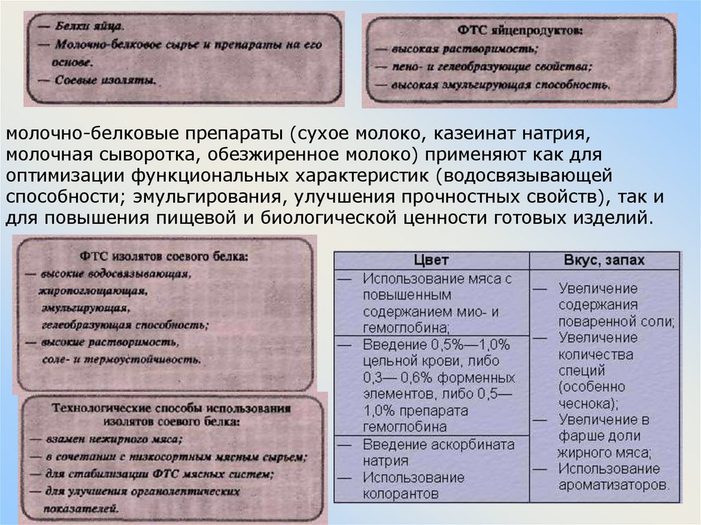 молочно-белковые препараты (сухое молоко, казеинат натрия,молочная сыворотка, обезжиренное молоко) применяют как для