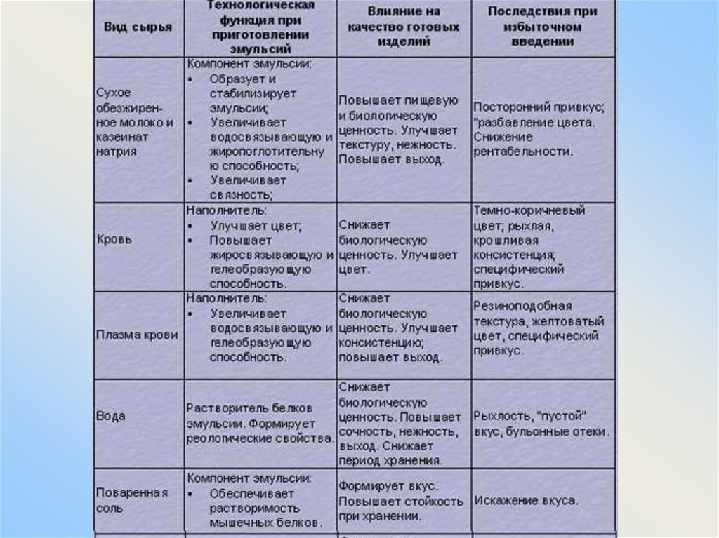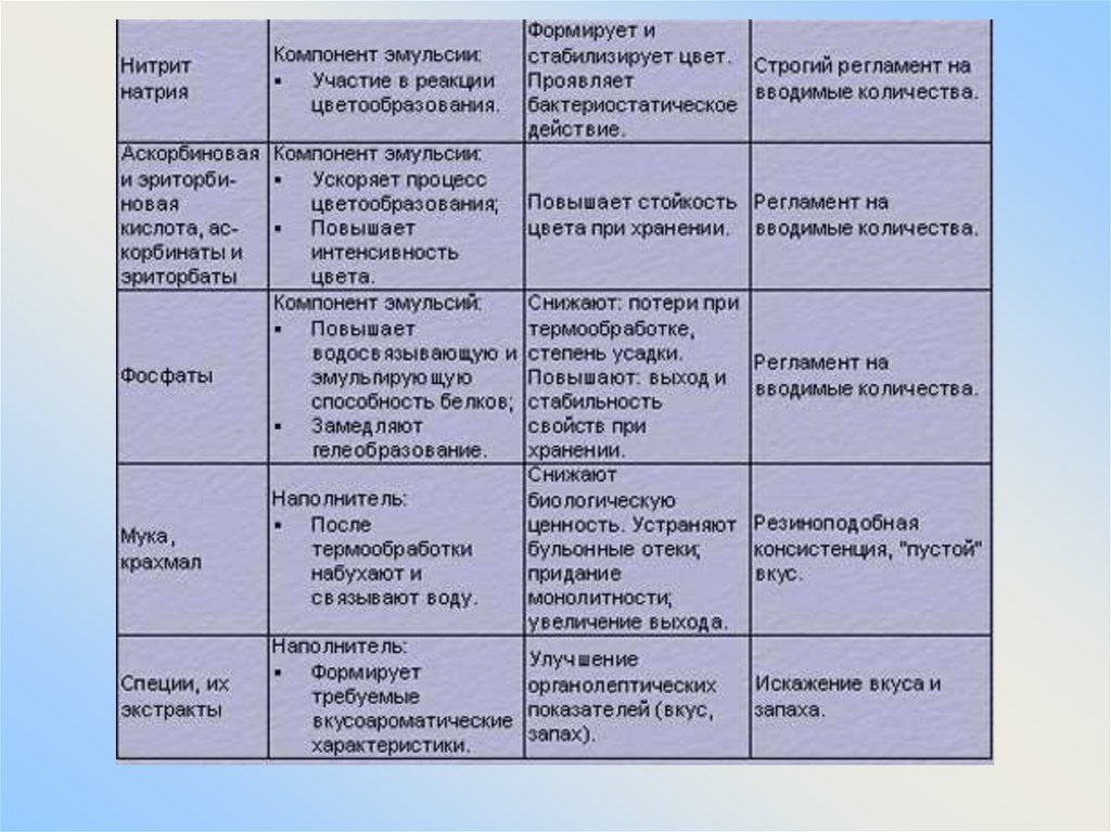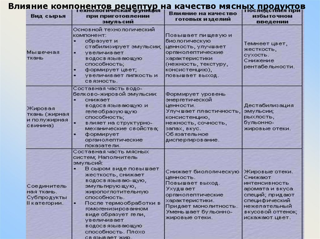 Влияние компонентов рецептур на качество мясных продуктов7.