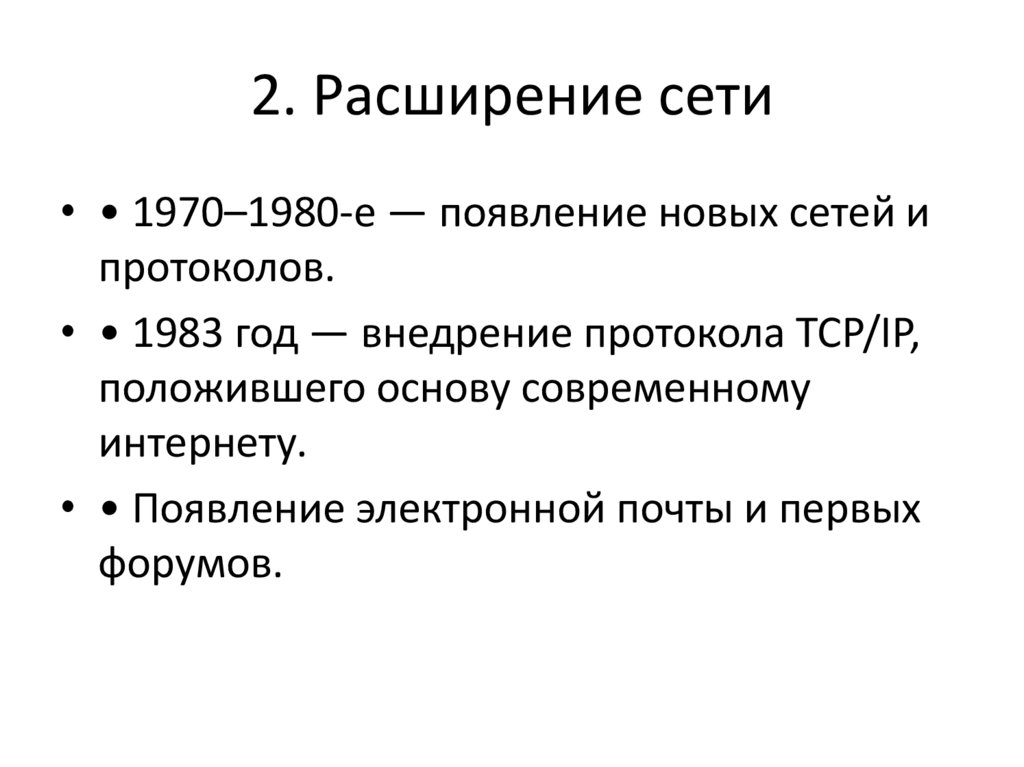 2. Расширение сети• • 1970–1980-е — появление новых сетей и