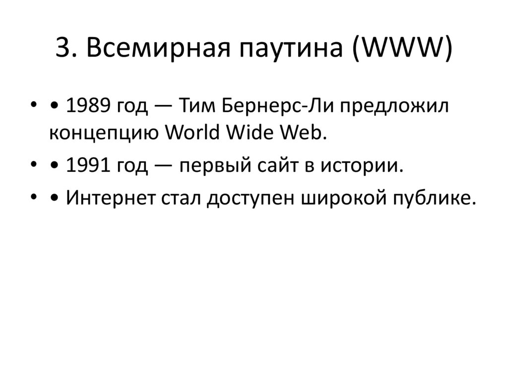 3. Всемирная паутина (WWW)• • 1989 год — Тим Бернерс-Ли предложил