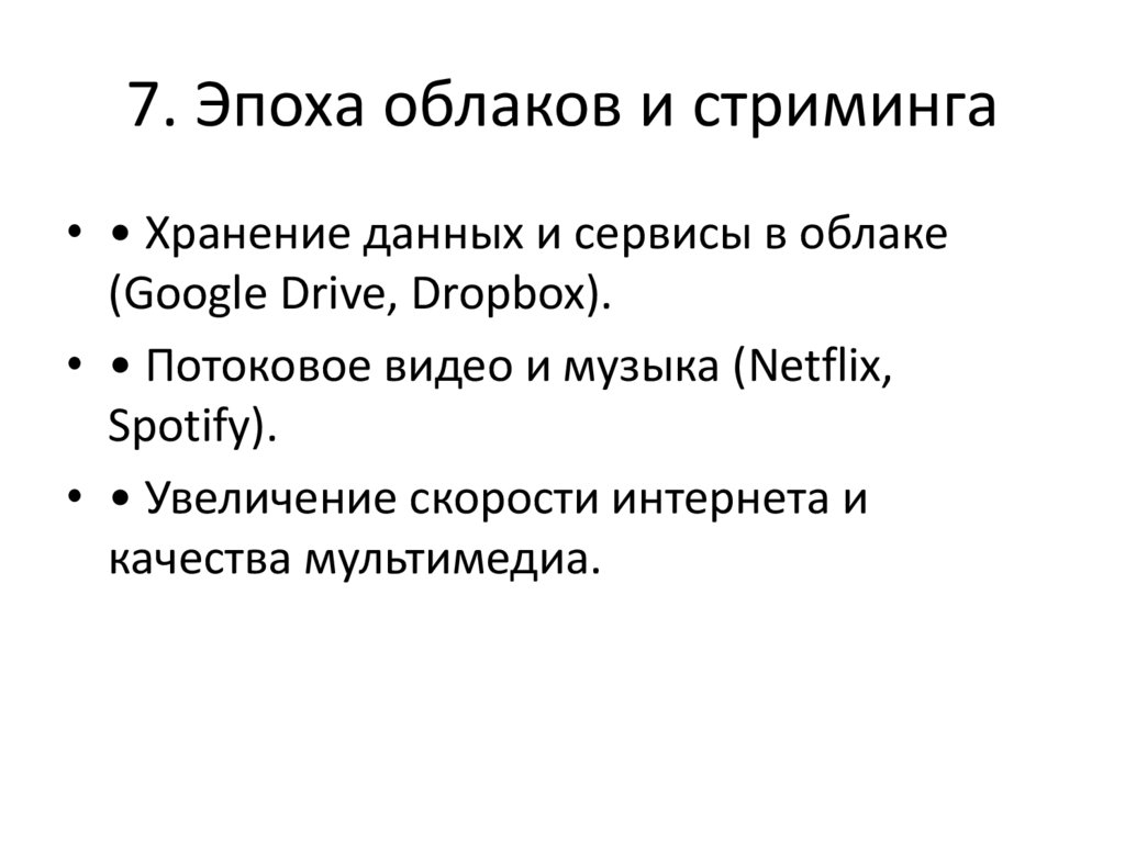 7. Эпоха облаков и стриминга• • Хранение данных и сервисы в облаке