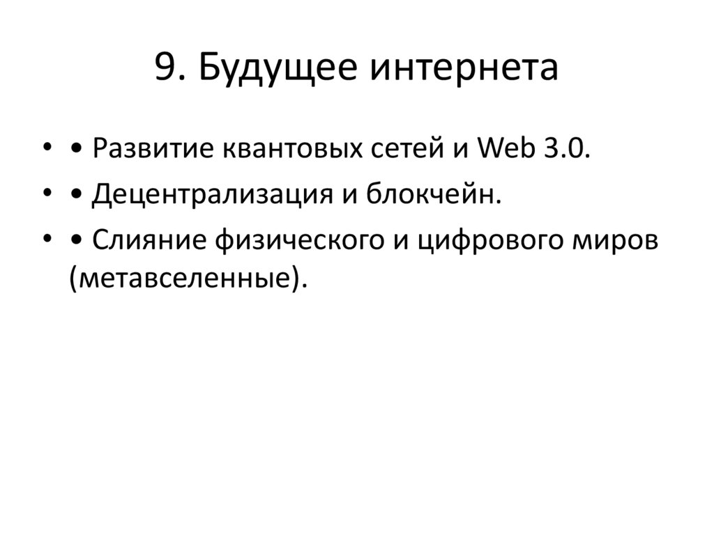 9. Будущее интернета• • Развитие квантовых сетей и Web 3.0.