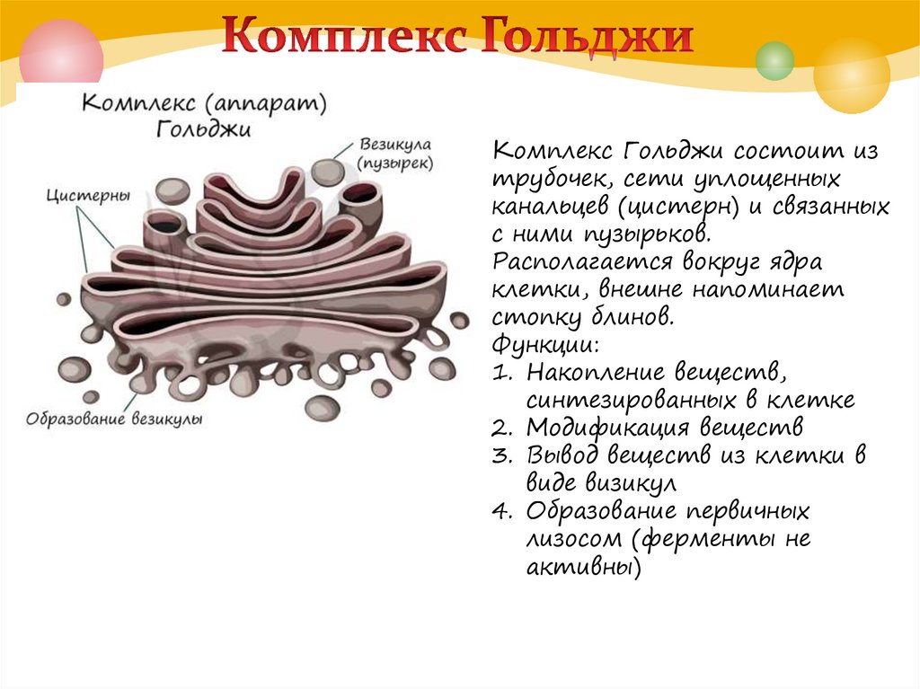 Комплекс Гольджи состоит изтрубочек, сети уплощенных