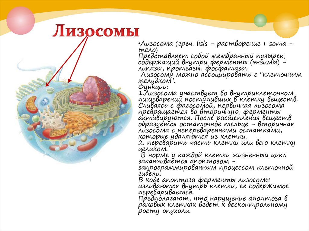 •Лизосома (греч. lisis - растворение + soma тело)Представляет собой мембранный пузырек,