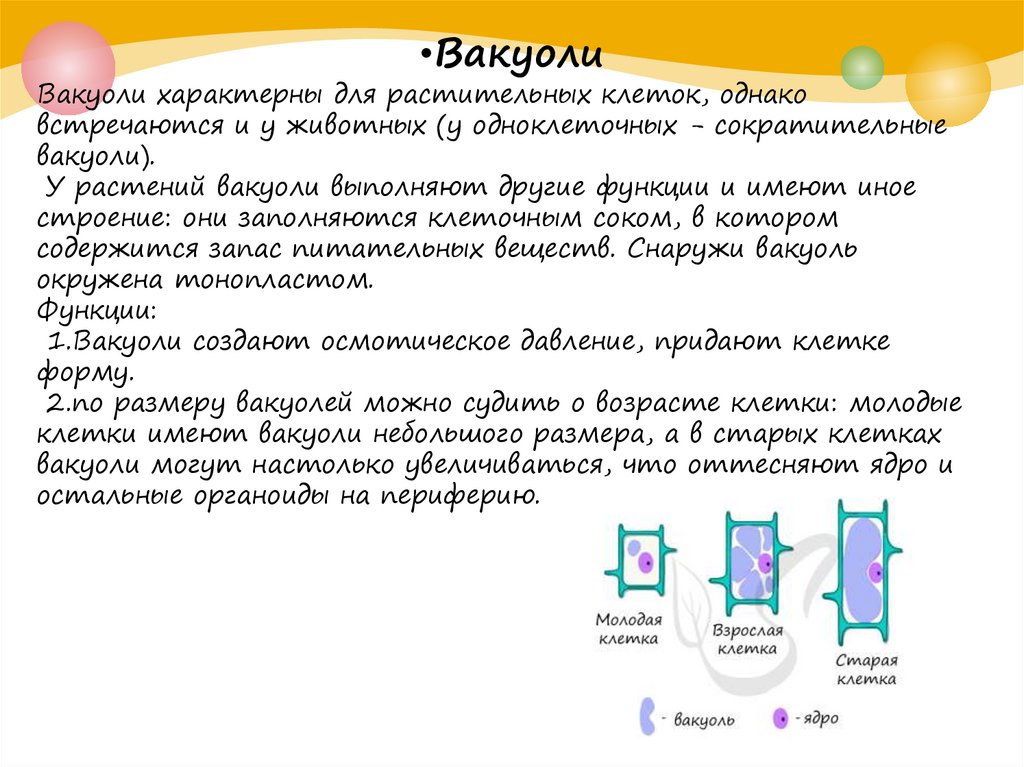 •ВакуолиВакуоли характерны для растительных клеток, однако